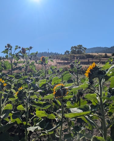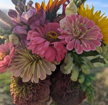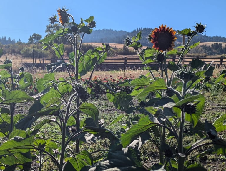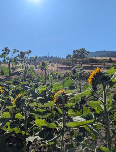 Nestled at the base of Craig Mountain, our seasonal farm is a place where fresh flavors, natural beauty and simple pleasures come together. We grow vibrant, just picked produce and hand tended flowers that reflect the rhythm of the seasons, and we bake everything from scratch using honest ingredients and time-honored methods. Whether you are stopping by for your weekly cinnamon rolls, a bundle of blooms, or a basket of farm fresh goodness, you'll be greeted with breathtaking views that make every visit feel like a little escape.