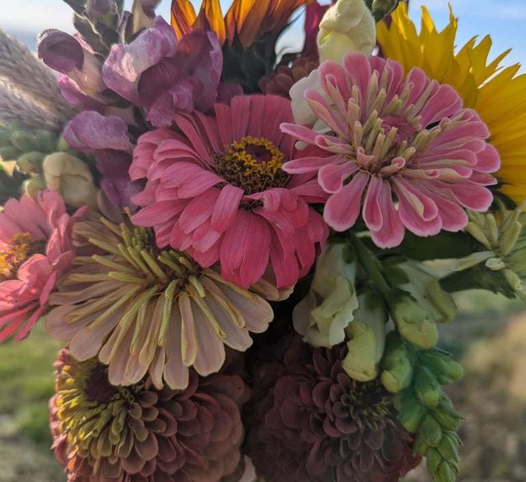 Our flower farm blooms alongside fruits and veggies, bringing a touch of nature’s beauty to every visit.